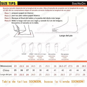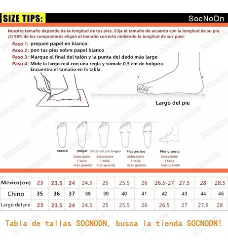 Declaração SOCNODN: Siga nossa loja SOCNODN, nos concentramos na qualidade do produto e na experiência do cliente. E cada par de sapatos passará por dois procedimentos de inspeção antes da entrega, para que você receba um calçado satisfatório.