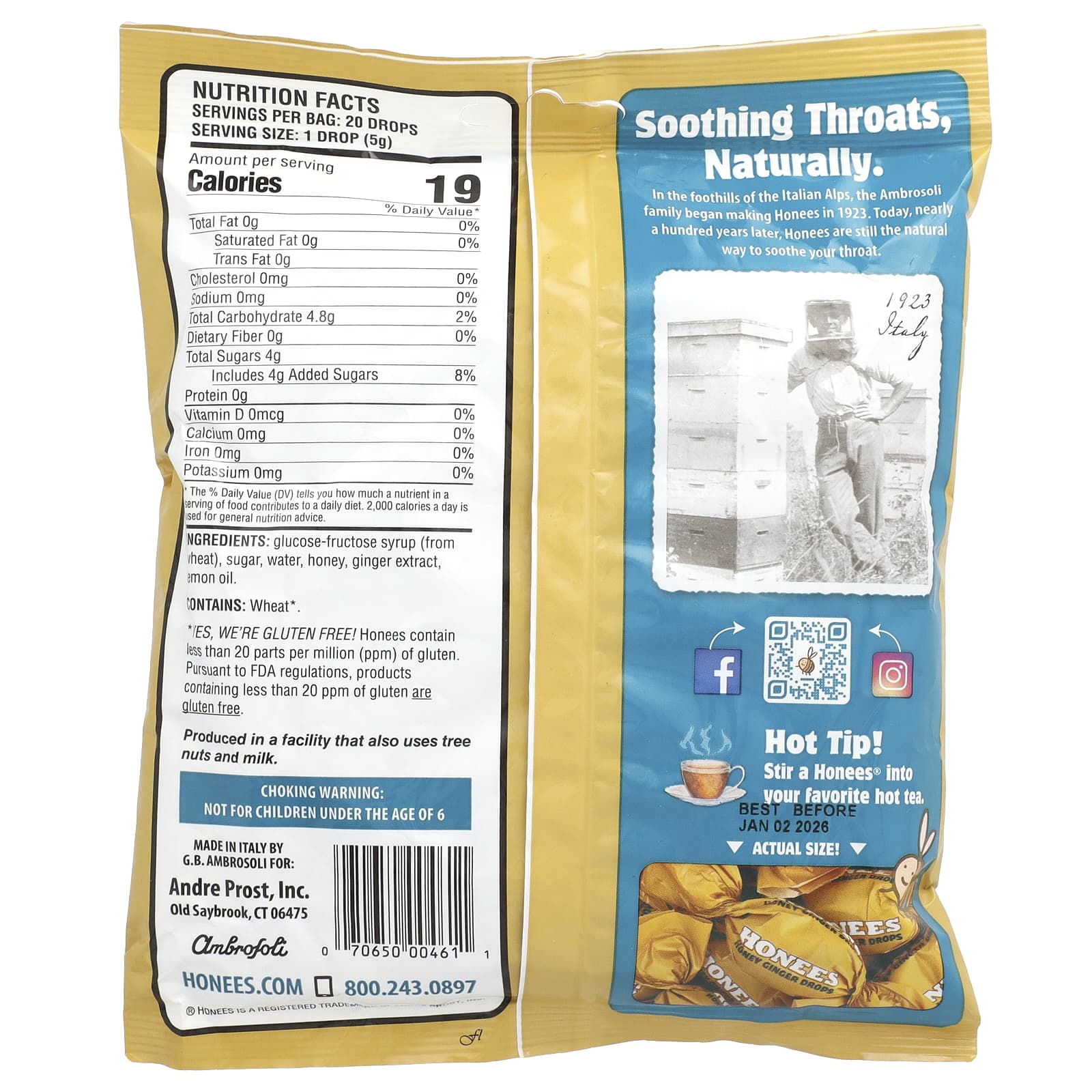 No sopé dos Alpes Italianos, a família Ambrosoli começou a produzir Honees em 1923. Hoje, quase cem anos depois, as Honees ainda são a forma natural de aliviar sua garganta.
