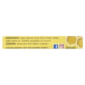 Açúcar, xarope de glicose (de trigo), mel, água, óleo de limão, mentol, óleo de eucalipto, alcaçuz.