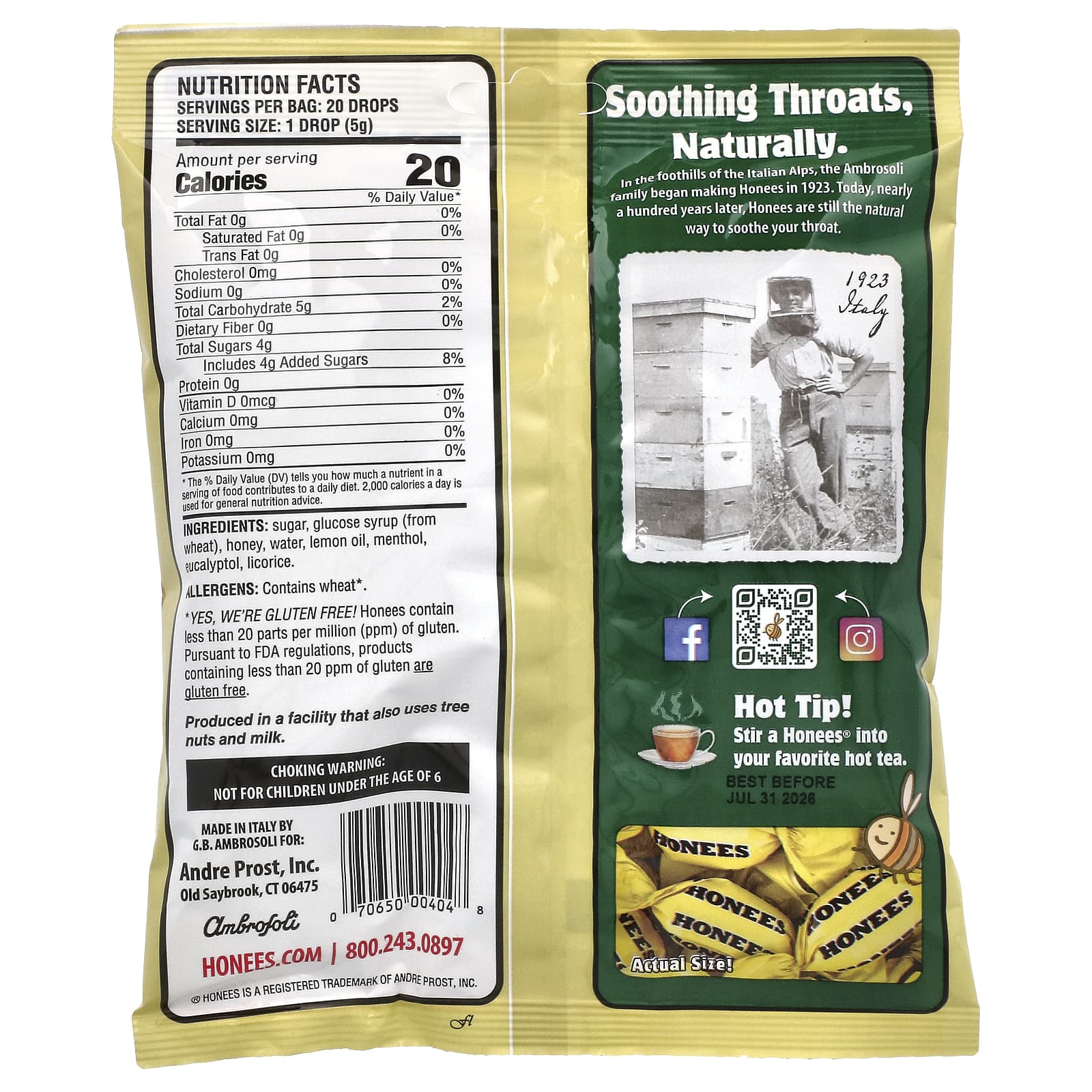 Honees Pastilhas para Tosse de Mel Limão e Mentol Eucalipto 20 Gotas de Tamanho Grande 100 g (35 oz) – Honees Cuidados Pessoais Armário do Banheiro Pastilhas para garganta inflamada e tosse.