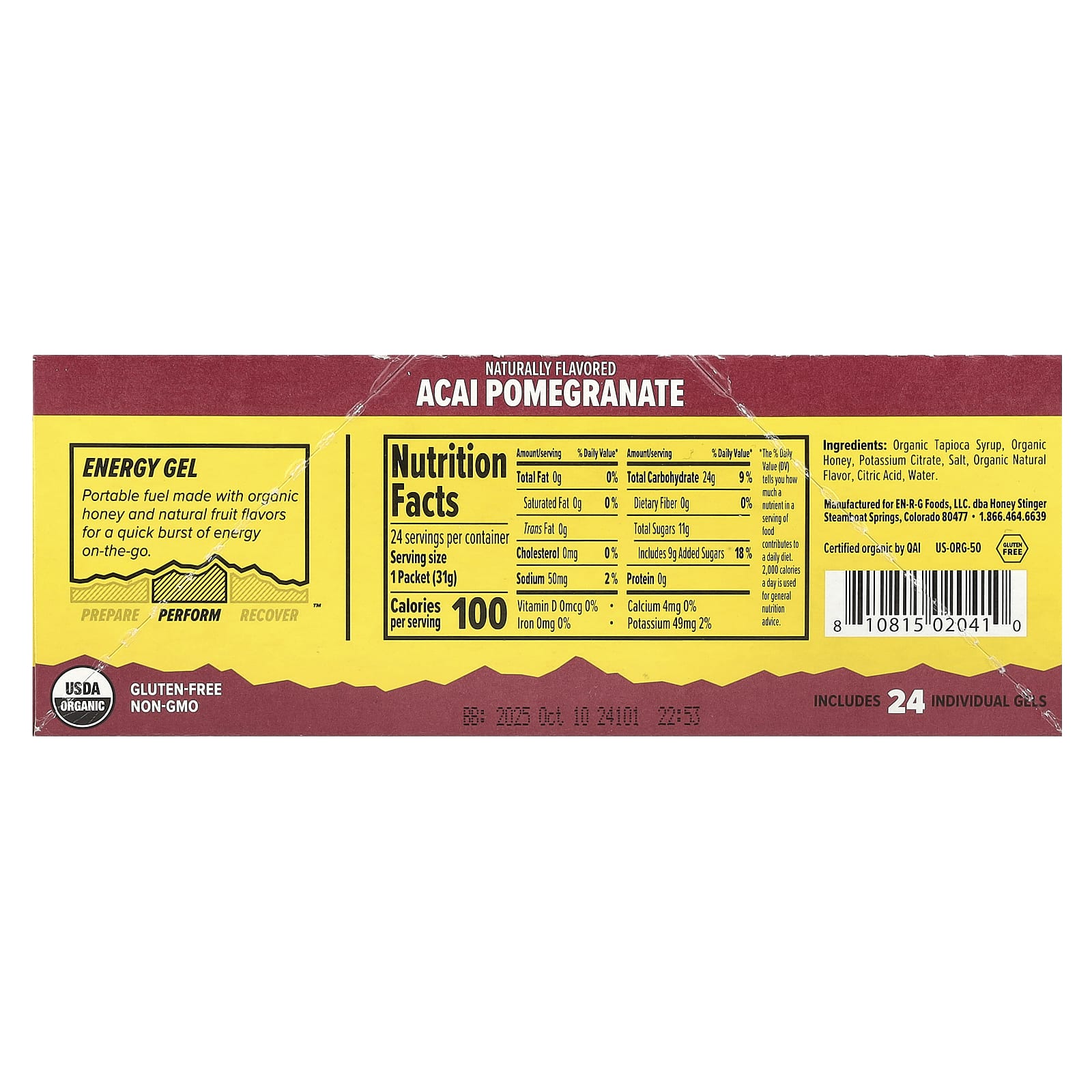 Honey Stinger Energy Gel Açaí e Romã 24 Embalagens 11 oz (31 g) Cada – Honey Stinger Nutrição Esportiva Barrinhas e snacks esportivos Saúde Energia.
