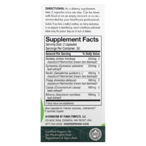 Host Defense Cogumelo de Defesa do Anfitrião MycoBotanicals Açúcar no Sangue 60 Cápsulas – Host Defense Suplementos Cogumelos Misturas de Cogumelos.