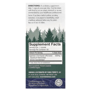 Host Defense Mushrooms™ Agarikon 60 Cápsulas (500 mg por Cápsula) – Host Defense Suplementos Cogumelos Agaricus.