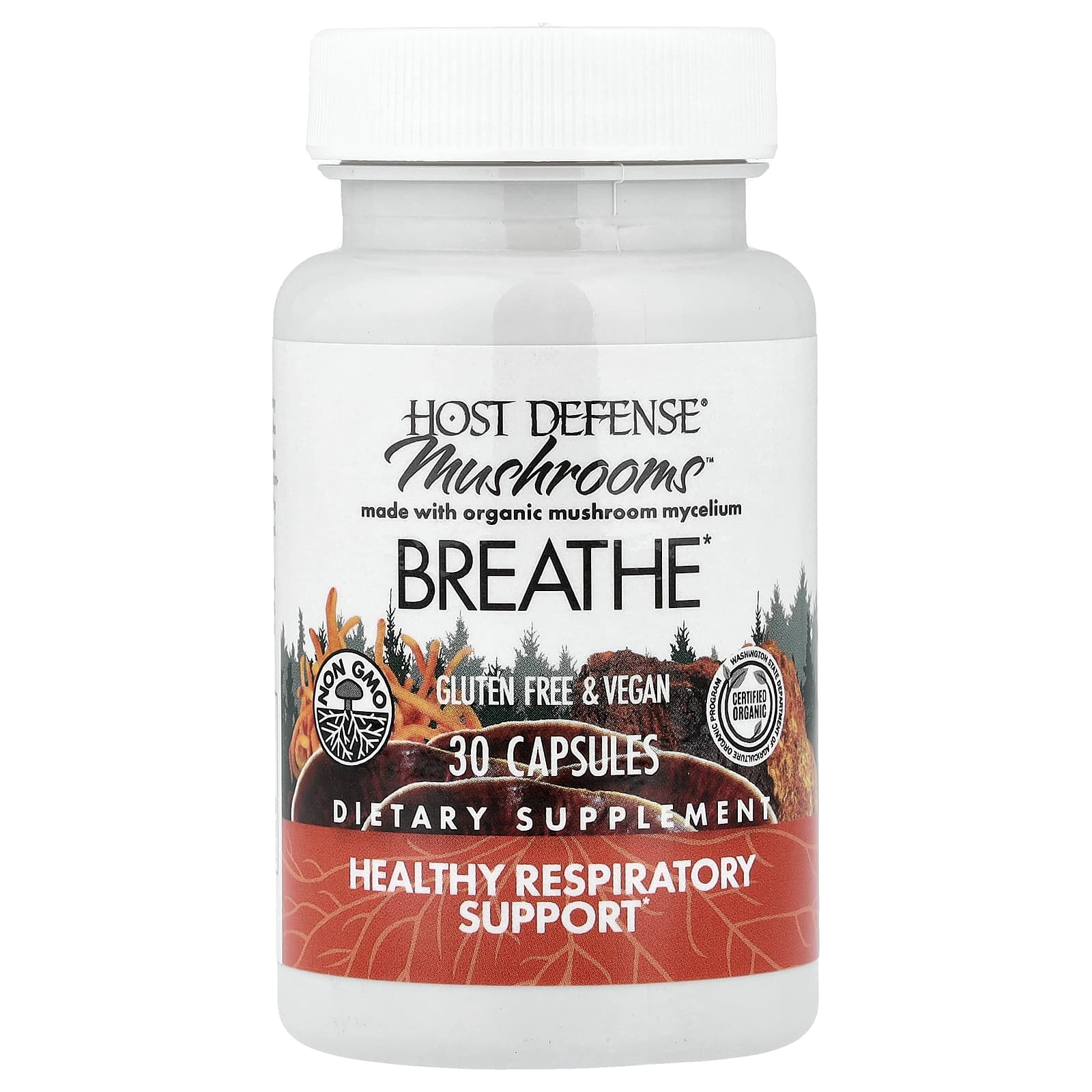 Host Defense Mushrooms™ Breath 30 Cápsulas – Host Defense Suplementos Cogumelos Misturas de Cogumelos Saúde Sistema Respiratório Sistema Respiratório e Pulmões.