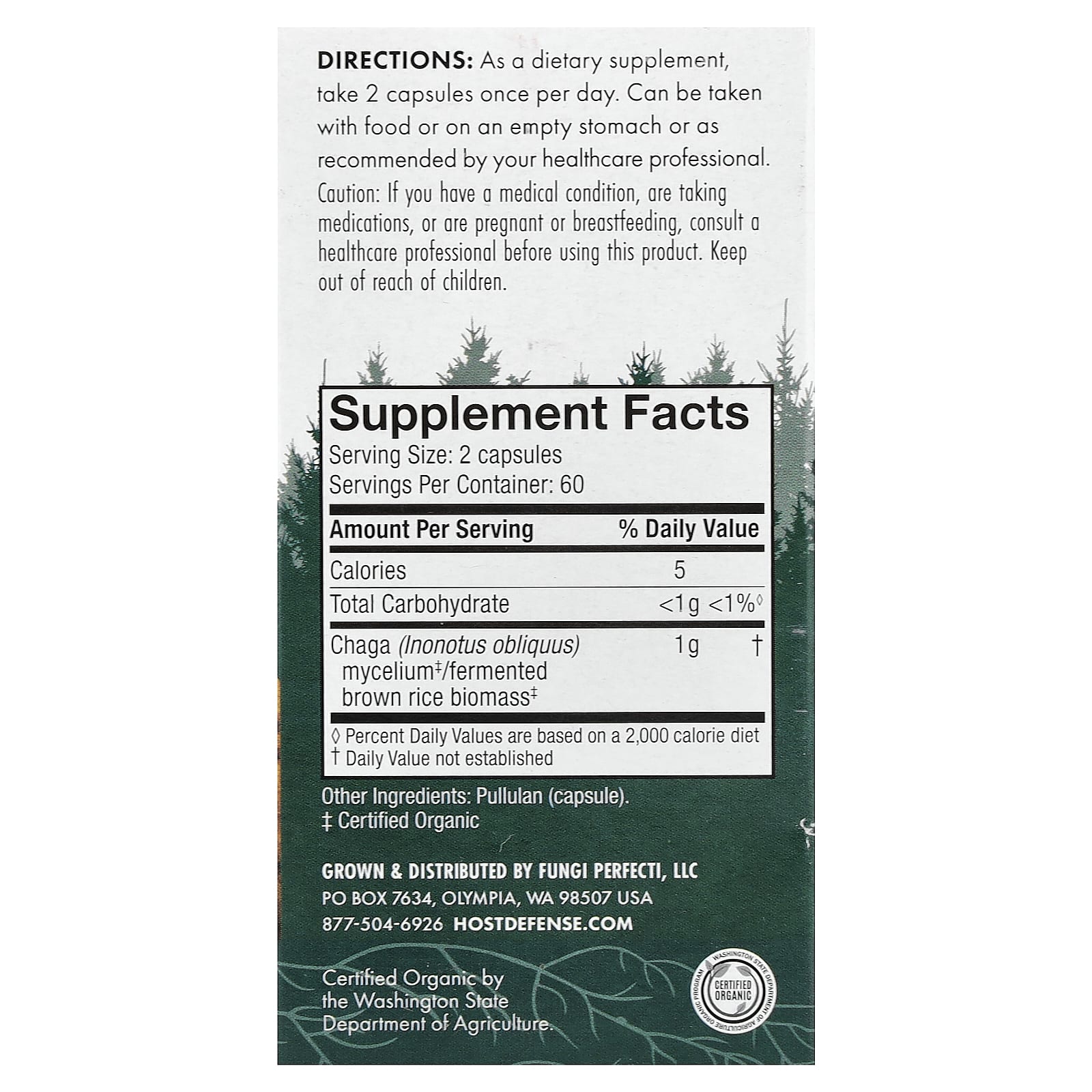 Host Defense Mushrooms Chaga 120 Cápsulas (05 g por Cápsula) – Host Defense Suplementos Cogumelos Chaga.