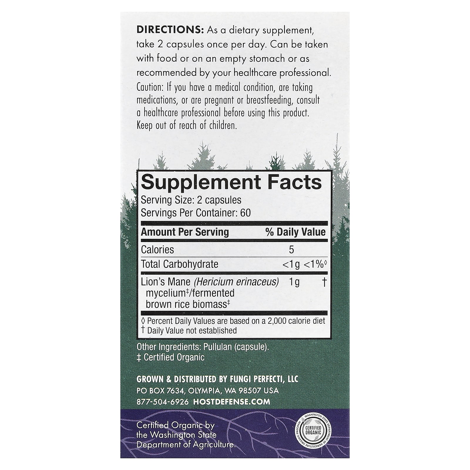 Host Defense Mushrooms™ Juba-de-leão 120 Cápsulas (05 g por Cápsula) – Host Defense Suplementos Cogumelos Juba de Leão.
