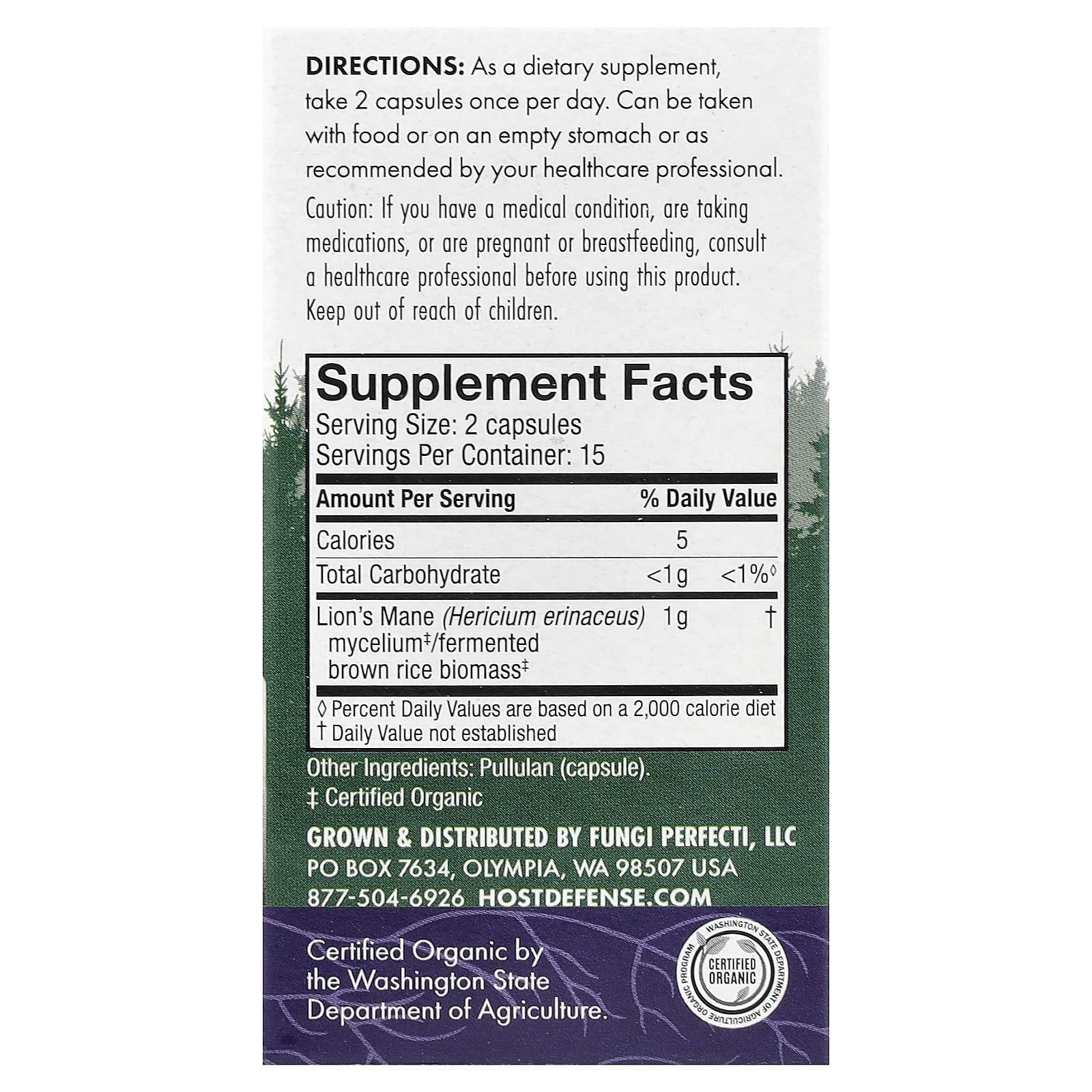 Host Defense Mushrooms™ Juba-de-leão 30 Cápsulas (05 g por Cápsula) – Host Defense Suplementos Cogumelos Juba de Leão.