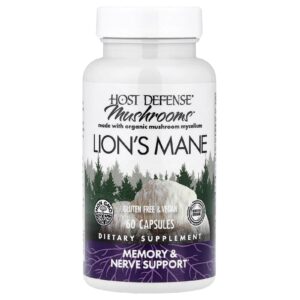 Host Defense Mushrooms™ Juba-de-leão 60 Cápsulas (05 g por Cápsula) – Host Defense Suplementos Cogumelos Juba de Leão Cérebro e Cognição.