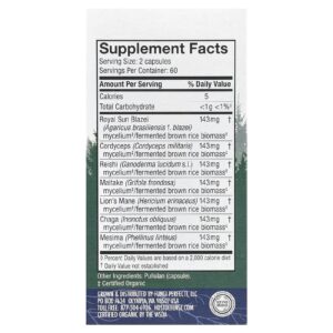 Micélio de Royal Sun Blazei (Agaricus tradicionalmente F. blazei)‡/biomassa de arroz integral fermentado‡ 143 mg