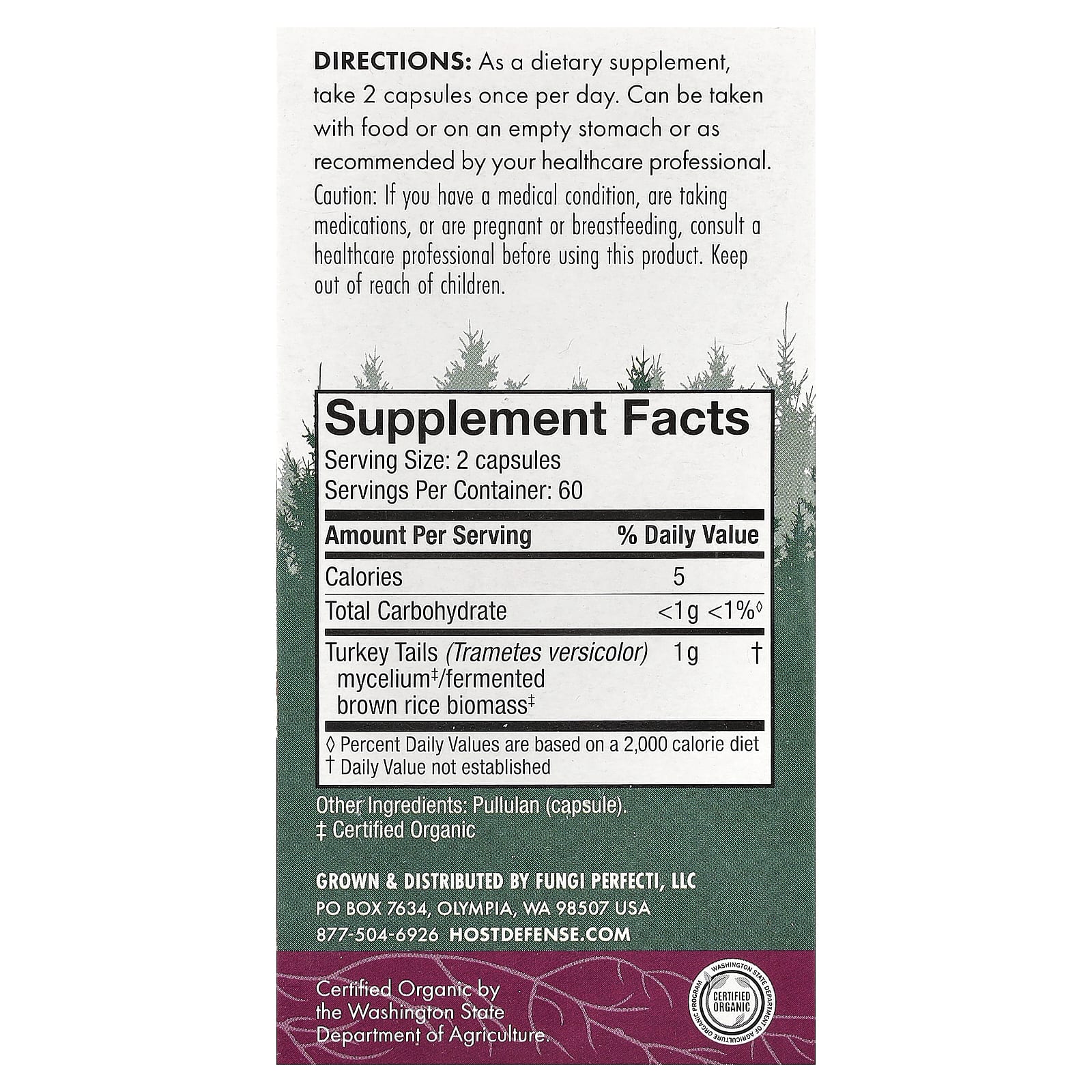 Host Defense Mushrooms™ Turkey Tail 120 Cápsulas (05 g por Cápsula) – Host Defense Suplementos Cogumelos Rabo-de-peru.