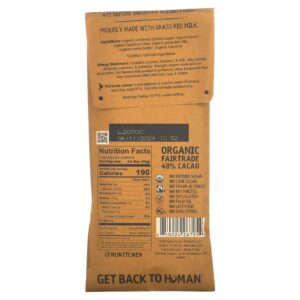 Açúcar de coco orgânico não refinado, cacau orgânico *, manteiga de avelã orgânica, leite orgânico de pasto, manteiga de cacau orgânica *, avelã orgânica.