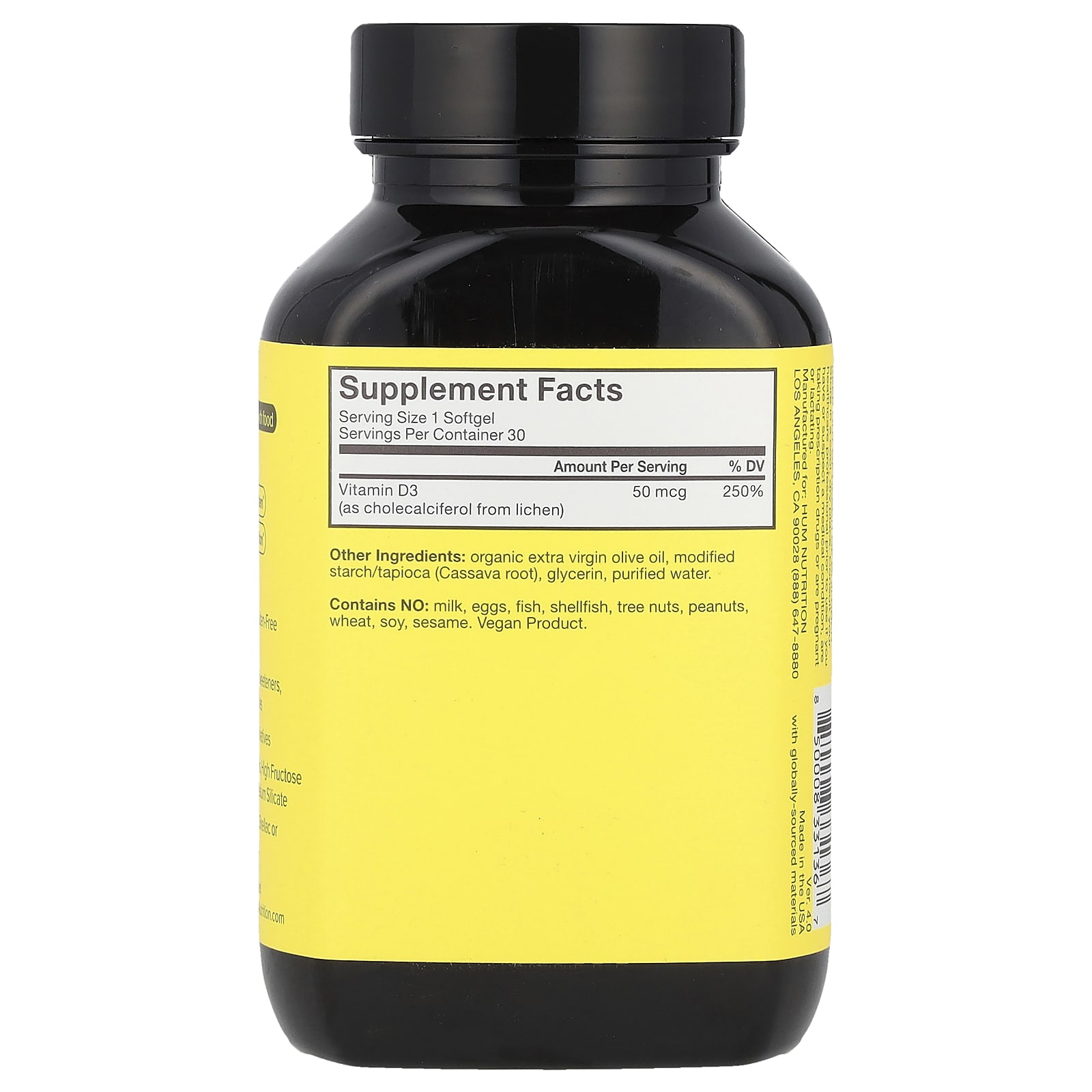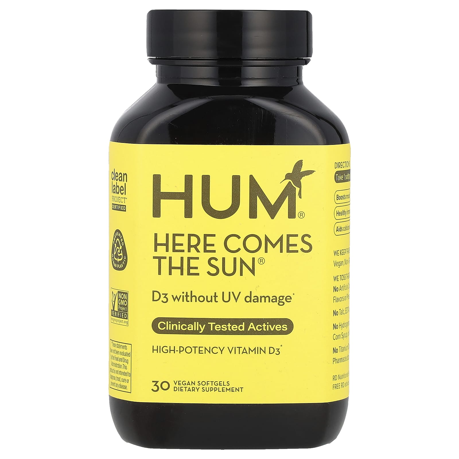 HUM Nutrition Here Comes The Sun® Vitamina D3 de Alta Potência 30 Cápsulas Softgel Veganas (50 mcg por Cápsula Softgel) – HUM Nutrition Suplementos Vitaminas Vitamina D.