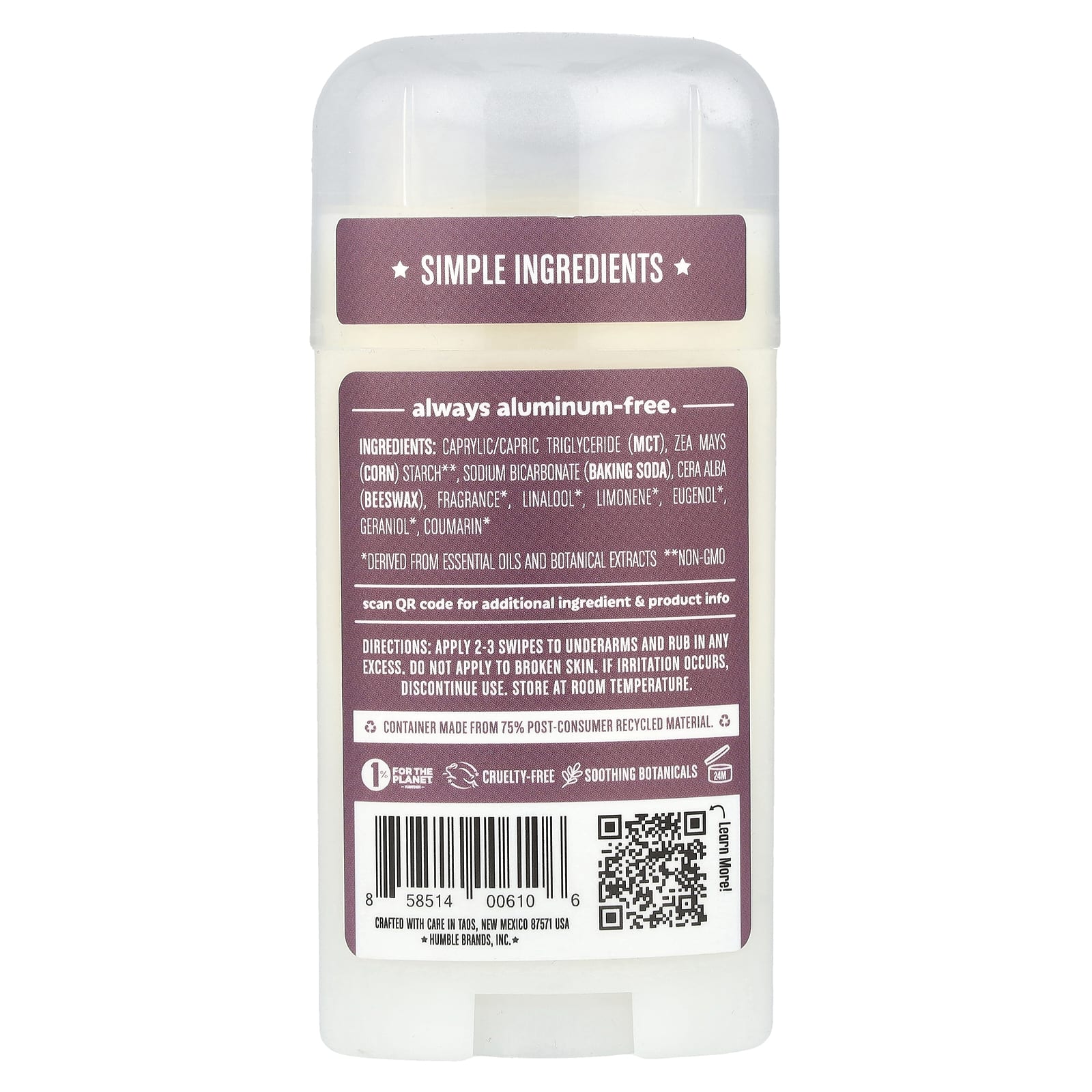 Humble Brands Desodorante sem Alumínio Lavanda e Manjericão Santo 70 g (25 oz) – Humble Brands Cuidados Pessoais Cuidados Íntimos Desodorante.