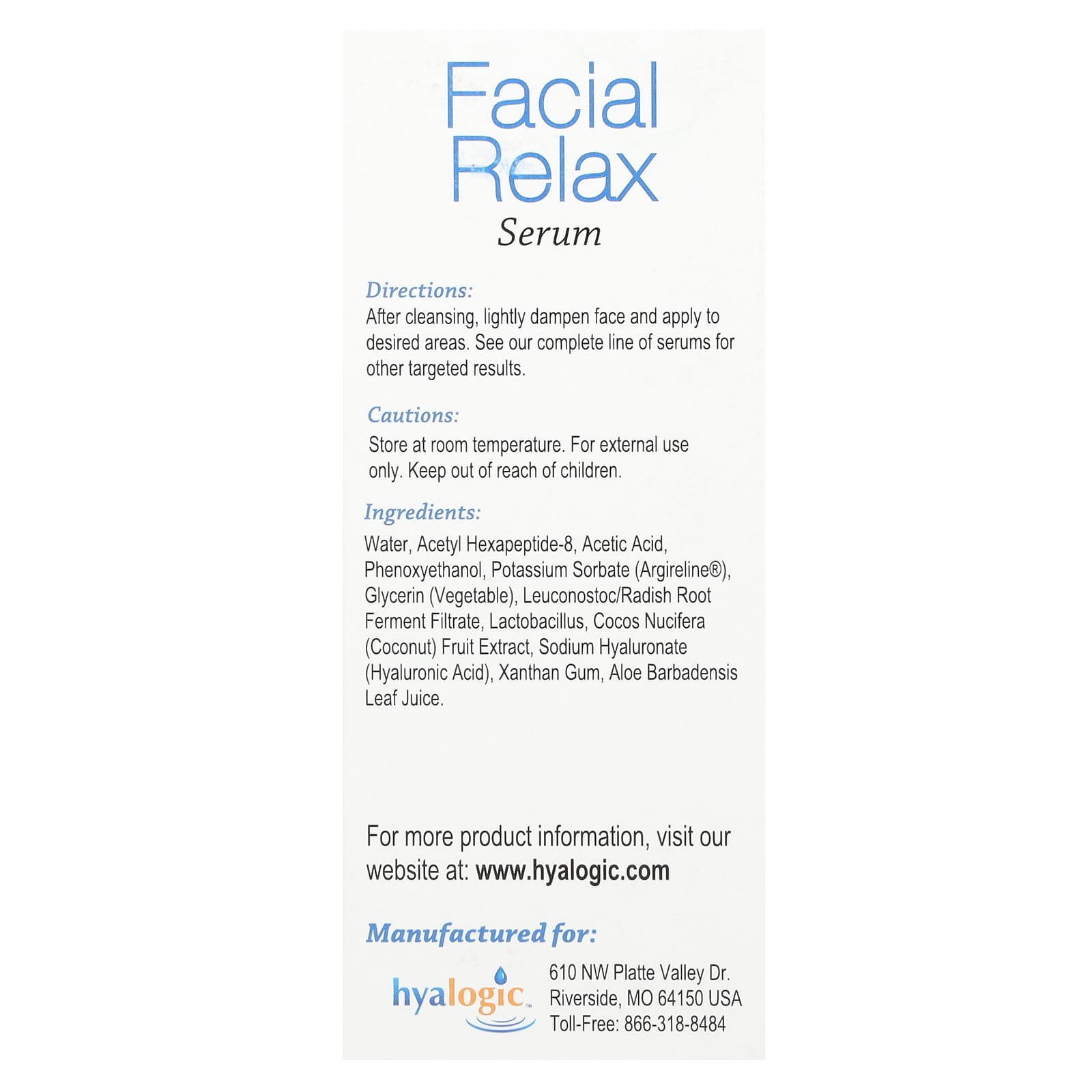 Hyalogic Sérum Facial Relaxante com Ácido Hialurônico e Argireline Sem Perfume 30 ml (1 fl oz) – Hyalogic Beleza Tratamentos e Séruns Séruns Faciais Séruns Antienvelhecimento e Firmadores Beleza por Ingrediente Cuidados com a Pele com Ácido Hialurônico.