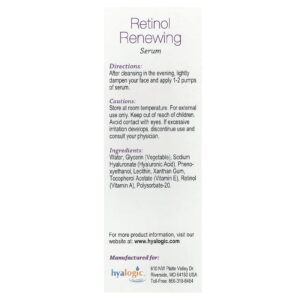 Hyalogic Sérum Renovador de Retinol com Ácido Hialurônico e Vitamina E Sem Perfume 135 ml (047 fl oz) – Hyalogic Beleza Tratamentos e Séruns Séruns Faciais Beleza por Ingrediente Cuidado para a pele com Vitamina E.