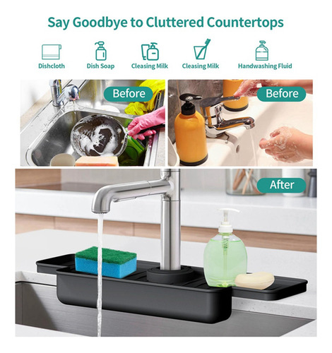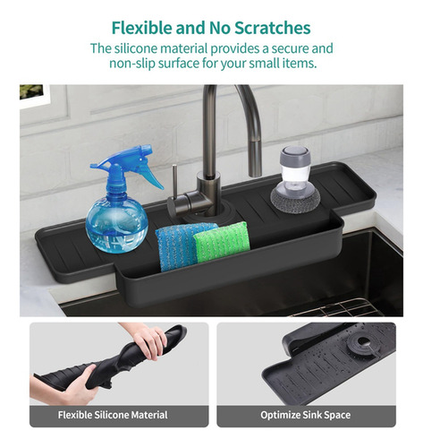 Qualidade e durabilidade premium Feitos com silicone de qualidade alimentar, nossos tapetes de torneira possuem excepcional resistência a manchas e odores, além de serem fáceis de limpar e manter, garantindo um uso duradouro. Atualize sua organização de cozinha O design extra e a saída de drenagem extra larga permitem um uso rápido.