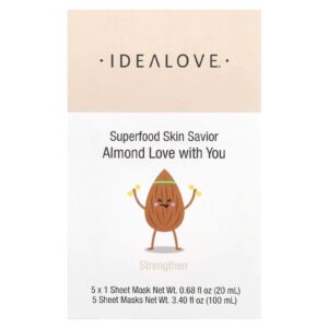 Idealove Superfood Skin Savior Almond Love with You 5 Máscaras Faciais de Beleza 20 ml (068 fl oz) Cada – Idealove Beleza Máscaras Faciais de Beleza Máscaras Faciais Máscaras em folha K-Beauty.
