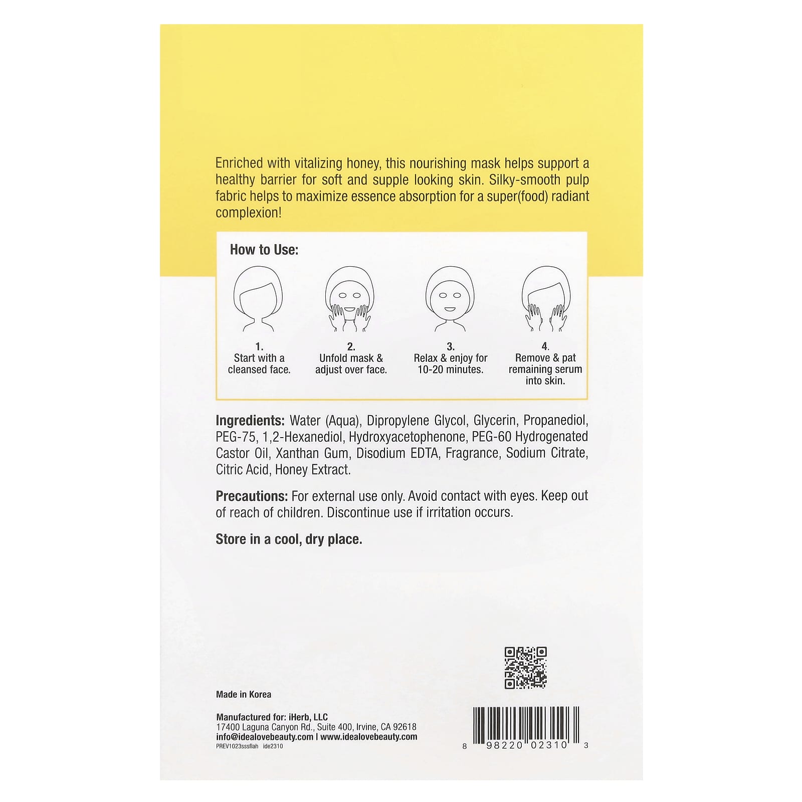 Mime-se com um dia de spa em casa com o Superfood Skin Savior, For Love and Honey da Idealove®. Esta máscara em folha com infusão de superalimento é enriquecida com mel revitalizante, que ajuda a contribuir para uma barreira cutânea saudável e promover uma pele macia e com elasticidade. Feitas com tecido de celulose macio e sedoso, as máscaras ajudam a maximizar a absorção da essência, proporcionando uma tez superalimentada e radiante!