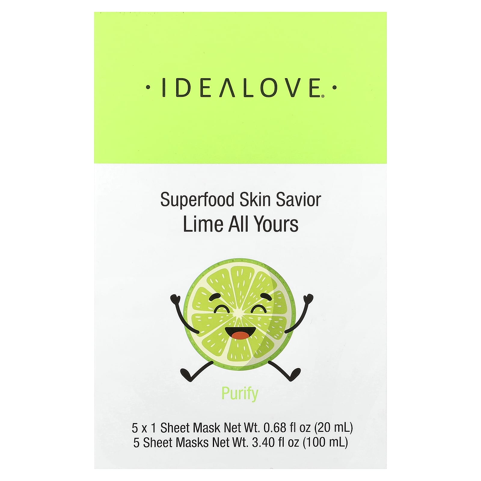 Idealove Superfood Skin Savior Lime All Yours 5 Máscaras Faciais de Beleza 20 ml (068 fl oz) Cada