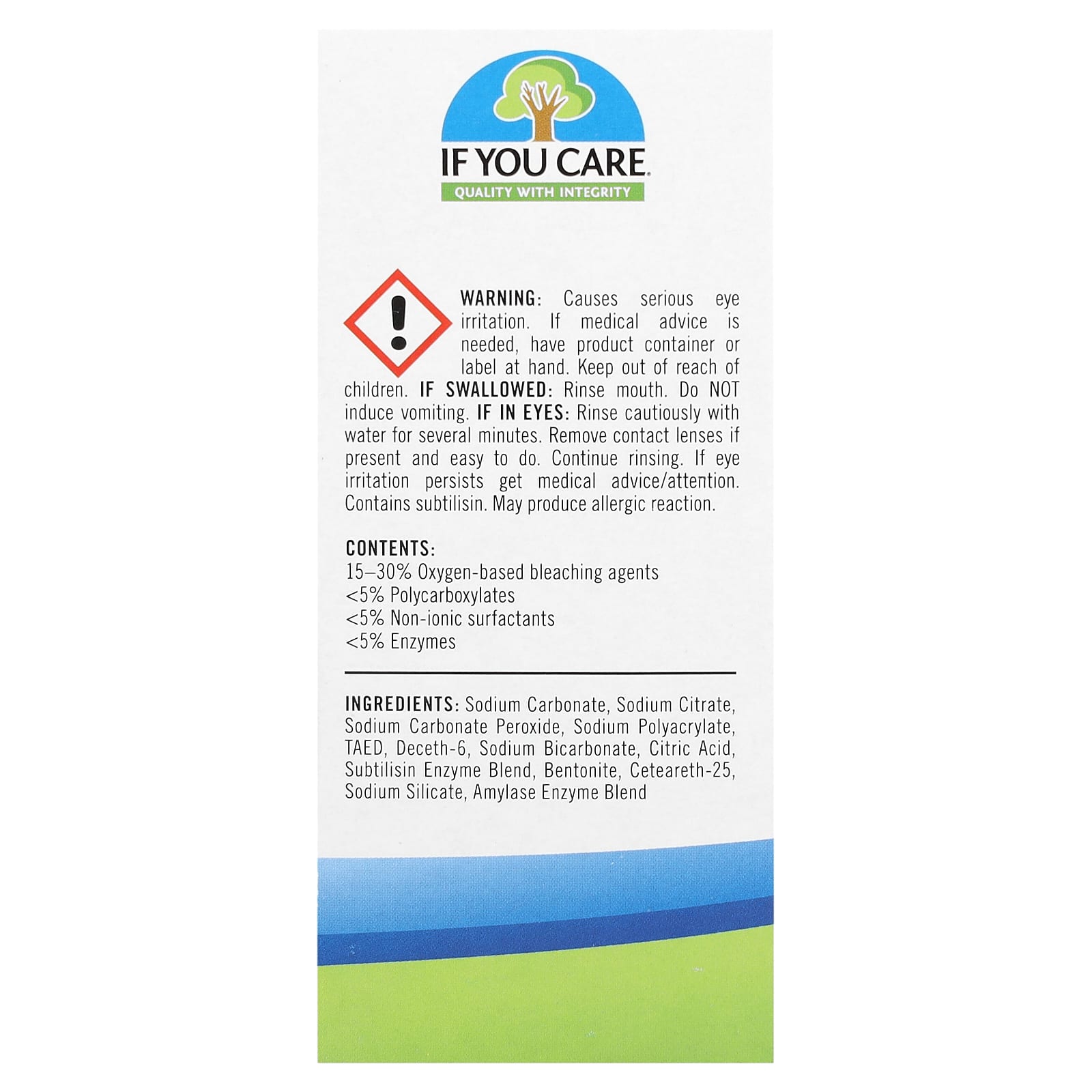 Causa séria irritação nos olhos. Se for necessário consultar um médico, tenha o recipiente ou rótulo do produto em mãos. Mantenha fora do alcance de crianças. Em caso de ingestão: Enxágue a boca. Não induza o vômito. Se entrar em contato com os olhos: Enxágue cuidadosamente com água por vários minutos. Remova lentes de contato, se houver e for fácil de fazer. Continue enxaguando. Se a irritação nos olhos persistir, procure atendimento médico. Contém subtilisina. Pode produzir reação alérgica.