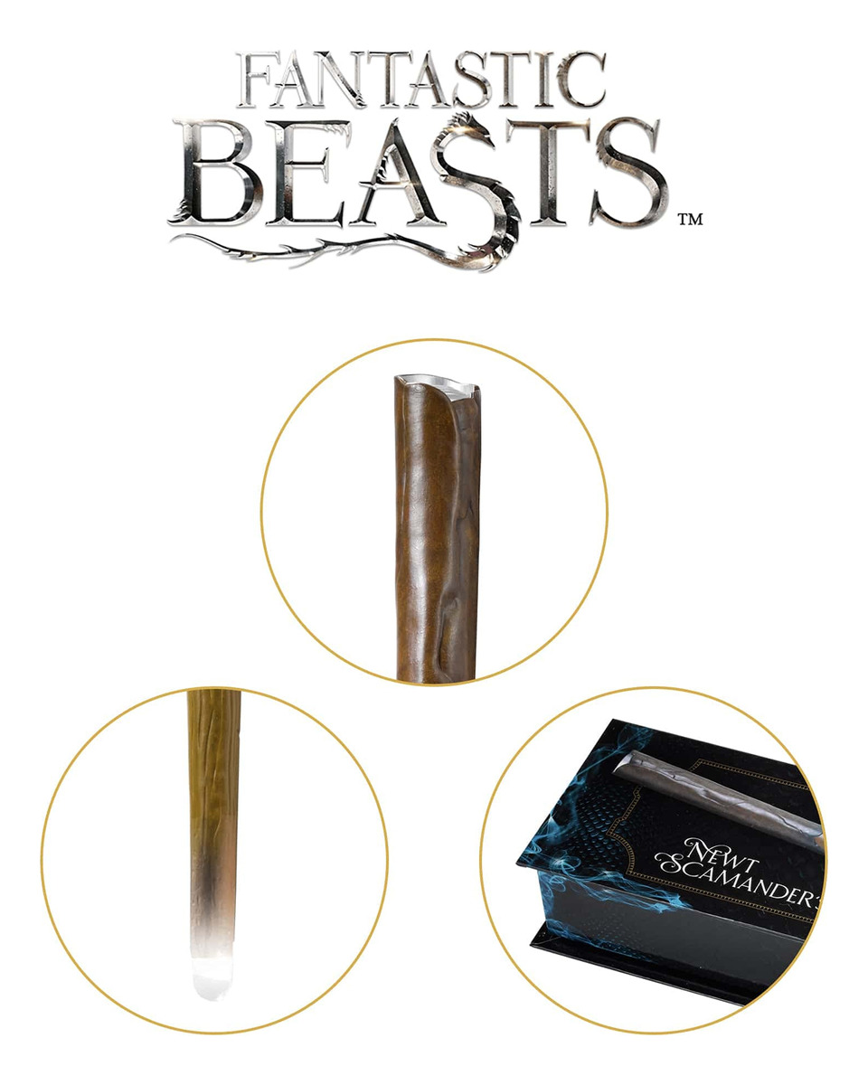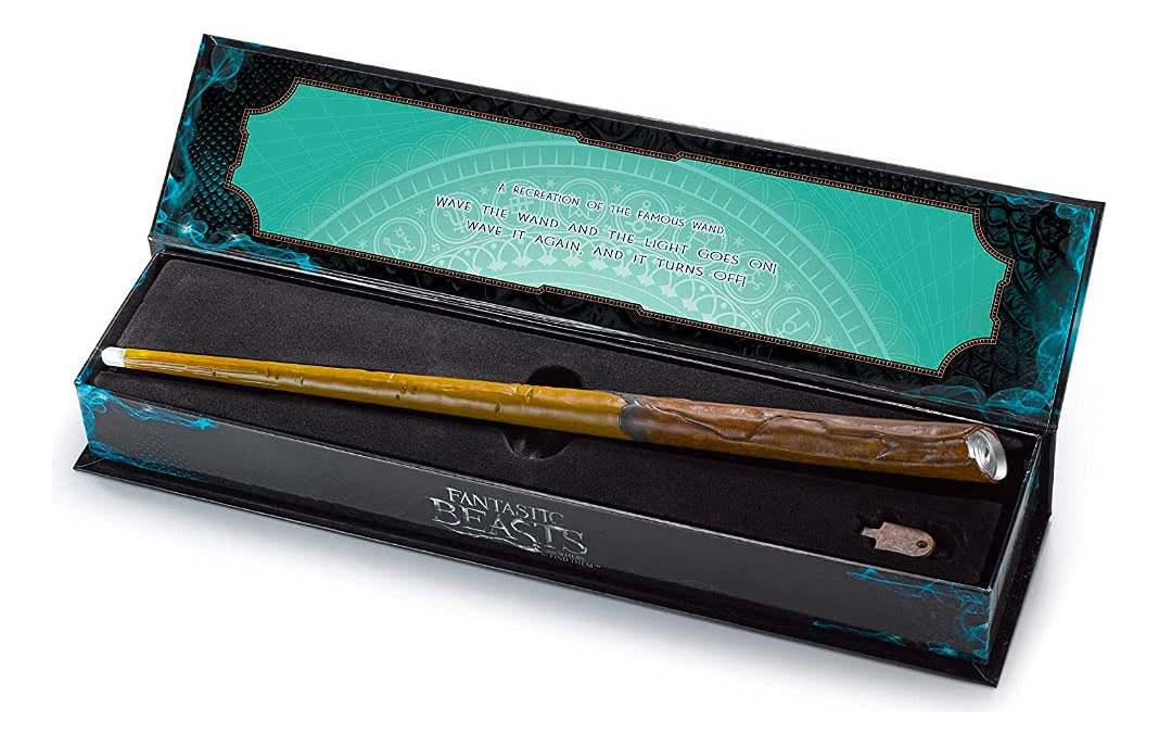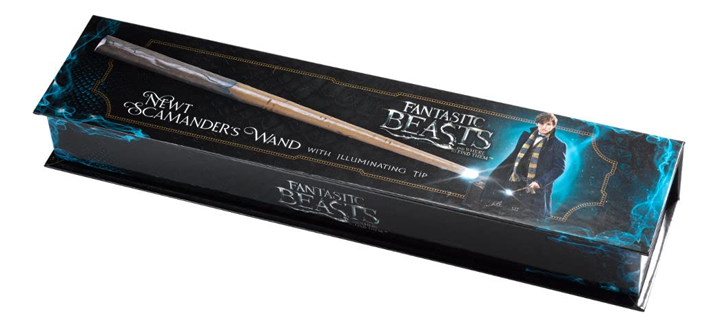 A Varinha Iluminadora de Newt Scamander da Noble Collection – Oficialmente autorizada pela Warner Brothers. – Agite a varinha e a luz se acende, agite novamente e ela se apaga! – A varinha mede 14 polegadas de comprimento. – De Animais Fantásticos e Onde Habitam – Fabricada pela The Noble Collection