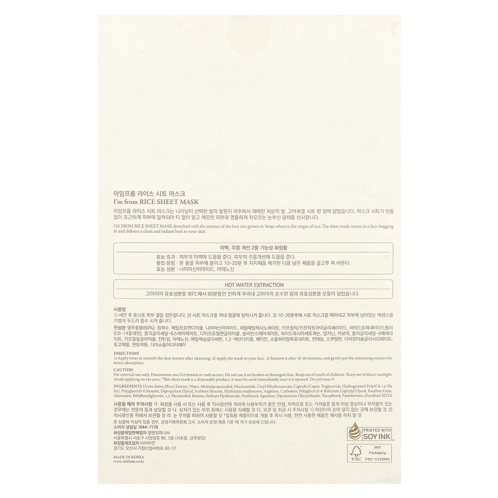 Im From Máscara Facial de Arroz 5 Folhas 20 ml (067 fl oz) Cada – I’m From Beleza Máscaras Faciais de Beleza Máscaras Faciais Máscaras em folha K-Beauty.