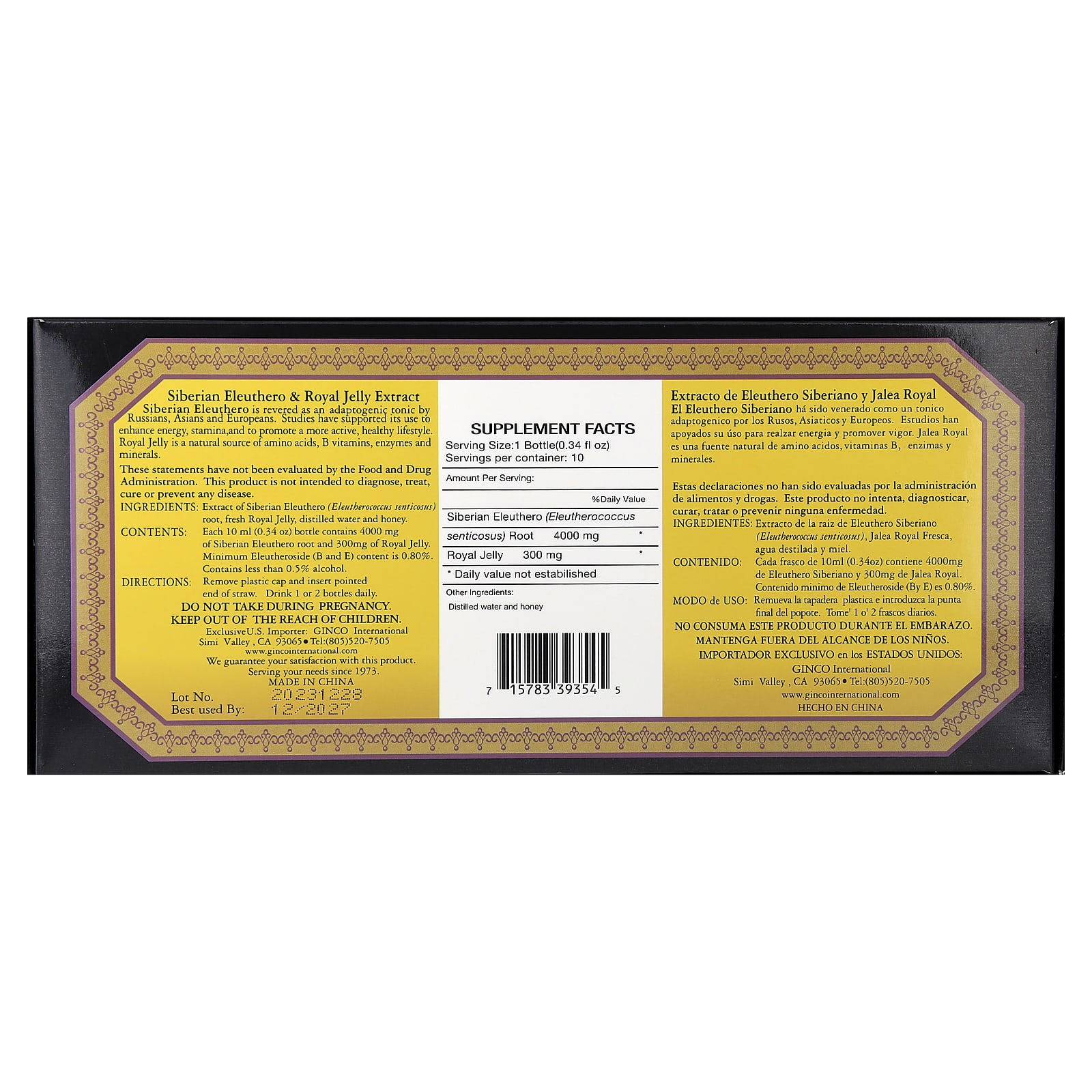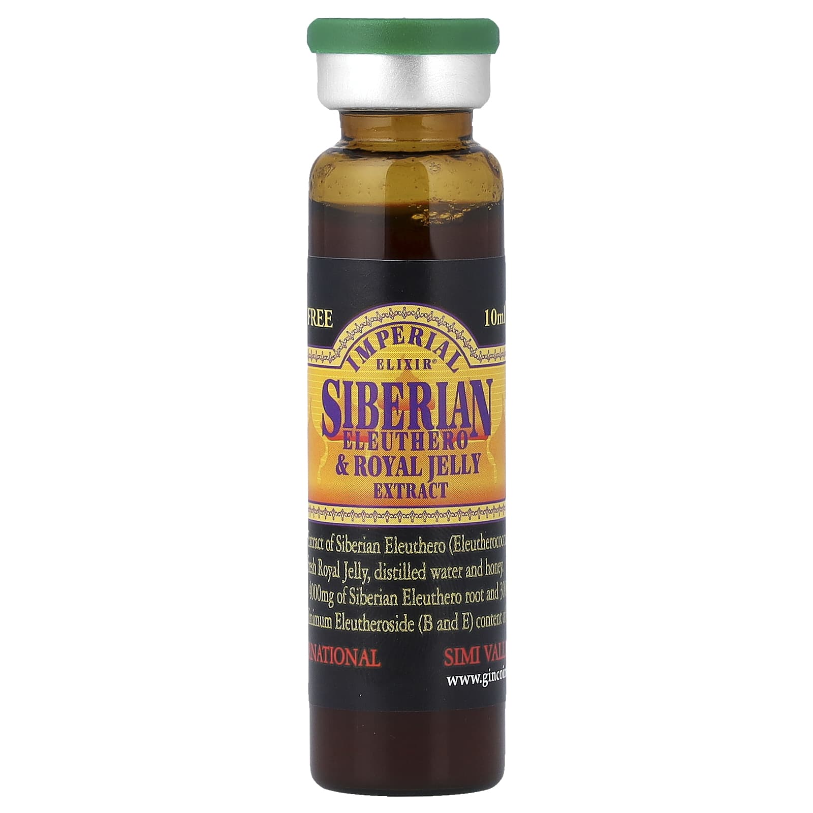 Imperial Elixir Extrato de Eleutero Siberiano e Geleia Real Sem Álcool 10 Frascos 10 ml (034 fl oz) Cada – Imperial Elixir Suplementos Produtos Derivados de Abelhas Geleia Real Ervas Ginseng Siberiano.