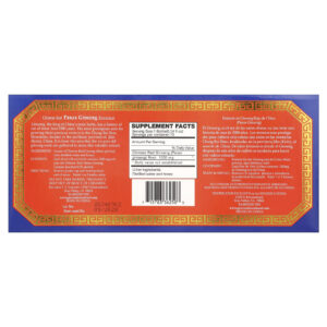 Cada frasco de 10 ml (0,34 oz) contém 1.200 mg de Panax Ginseng Vermelho Chinês de 6 anos.