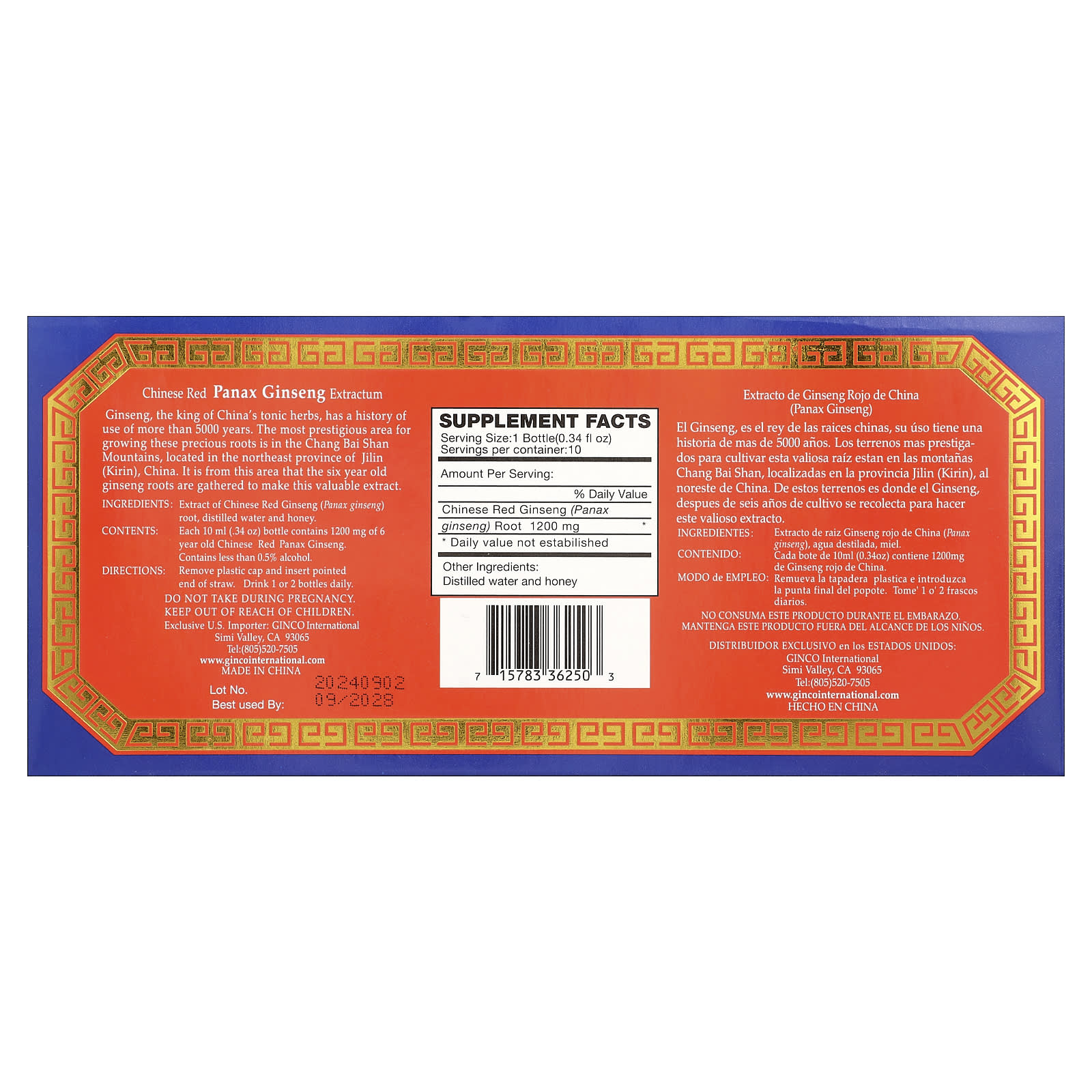 Imperial Elixir Extrato de Panax ginseng Vermelho Chinês 10 Frascos 10 ml (034 fl oz) Cada – Imperial Elixir Suplementos Ervas Ginseng Ginseng Asiático.