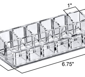 Amazing Abby oferece produtos domésticos verdadeiramente inovadores e da mais alta qualidade, com: Design original: Nossos produtos exclusivos são funcionais e atraentes. Eles servem para usos práticos e também são ótimos itens decorativos em casa. Segurança perfeita: Feito de plástico de qualidade premium. Não se estilhaçará como vidro ou cerâmica. Seguro e durável. Ideal para uso no banheiro e no quarto. Alta qualidade: cada peça é inspecionada manualmente logo antes de ser embalada e entregue para garantir o mais alto padrão de qualidade. Ótimo presente: um presente perfeito para você e seus entes queridos. Uma ideia incrível de presente para aniversários, casamentos, aniversários e qualquer outra ocasião especial. Elegância moderna: cristalina e brilhante. Design elegante e moderno. Um objeto elegante para qualquer lugar da casa. – [ÓTIMO ARMAZENAMENTO] Organizador de cosméticos acrílico para armazenar produtos de beleza: batons, gloss, delineadores e muito mais. Solução perfeita para organizar itens e manter a penteadeira arrumada e limpa. – [DESIGN IDEAL] O design de 12 slots oferece um ótimo espaço para todos os batons. Tamanho perfeito com amplo espaço de armazenamento. – [SEGURANÇA PERFEITA] Feito de plástico acrílico de qualidade premium. Não se estilhaçará como vidro ou cerâmica. Seguro e durável. Ideal para seu uso diário e em qualquer lugar. – [ÓTIMO PRESENTE] Um presente perfeito para você e seus entes queridos. Uma ideia incrível de presente para aniversários, boas-vindas e qualquer outra ocasião especial. – [ELEGÂNCIA MODERNA] Clara e brilhante. Design elegante e moderno. Um objeto elegante para qualquer lugar da casa.