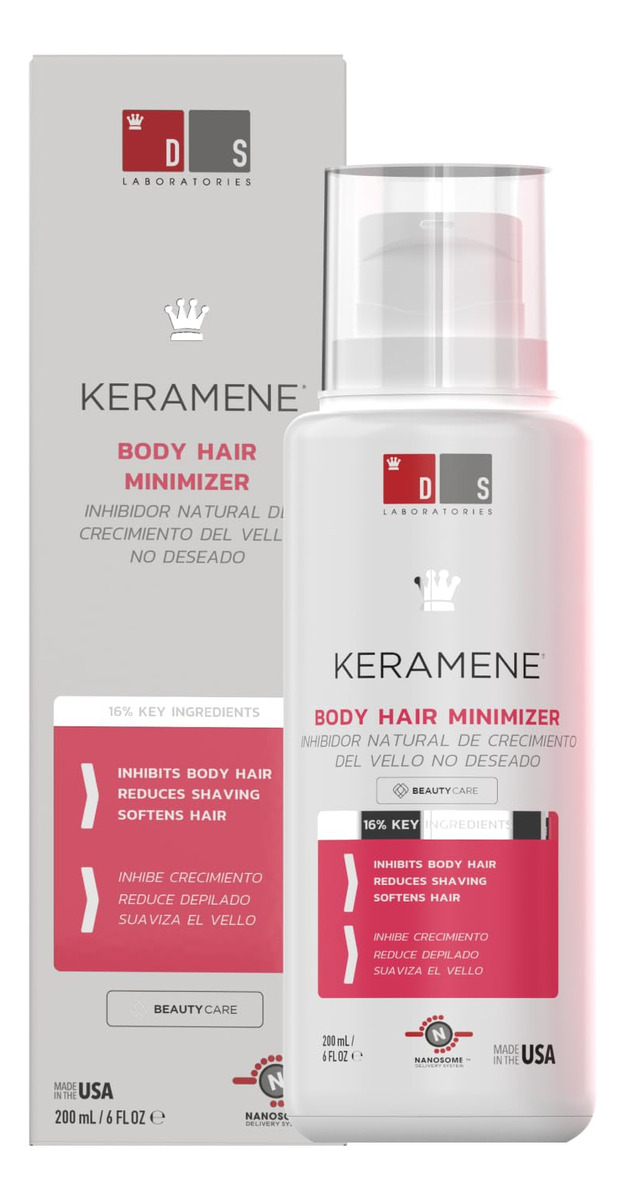O queramene é o resultado de anos de pesquisas científicas sobre a fisiologia do folículo piloso, para reduzir os pêlos faciais e corporais indesejados. Esta fórmula exclusiva funciona por meio de duas vias principais, primeiro inibindo a fase folicular anágena, induzindo o estado catágeno do folículo piloso para impedir o crescimento do cabelo e depois suprimindo a produção de queratinócitos para que o cabelo existente cresça mais lentamente e mais fino. Consequentemente, muitos cabelos nunca crescem e muitos cabelos crescem em menor grau. Essa ação no ciclo capilar reduz o número de cabelos e prejudica sua qualidade, reduzindo eventualmente a necessidade de depilação/barbear. É formulado com vitamina E para benefícios de proteção e condicionamento e água de hamamélis para evitar pêlos encravados. – Pelos corporais mais finos, macios e menos visíveis: a fórmula exclusiva do querameno atua por meio de duas vias principais, primeiro inibindo a fase anágena folicular, induzindo o estado catágeno do folículo piloso para impedir o crescimento do cabelo e depois suprimindo a produção de queratinócitos para que o cabelo existente cresça de forma saciada Mais fino e mais fino. – Passe menos tempo depilando, barbeando e pinçando: o queramene torna possível passar menos tempo depilando, barbeando ou pinçando. Ao diminuir o crescimento do cabelo, esta fórmula avançada devolve horas a cada mês. – Pele macia e bonita: o queramene diminui os pelos do corpo e, ao mesmo tempo, nutre a pele, para uma aparência fresca e brilhante. Ao contrário de outros produtos, o queramene não inflama nem irrita a pele. Com ingredientes poderosos como hamamélis, o queramene ajuda a reduzir o inchaço e evita pelos encravados nas peles mais delicadas. – Ideal para áreas sensíveis: graças à sua fórmula suave e eficaz, reduz a taxa de crescimento do cabelo quando aplicado conforme as instruções. Com o tempo, você depila/pinça e depila menos pelos faciais e corporais. – Tecnologia nanossomática: as fórmulas da DS Laboratories apresentam nossa tecnologia proprietária de nanossomos. Essa tecnologia usada para encapsulamento permite a liberação contínua dos ingredientes ativos, criando maior eficácia com resultados mais duradouros.