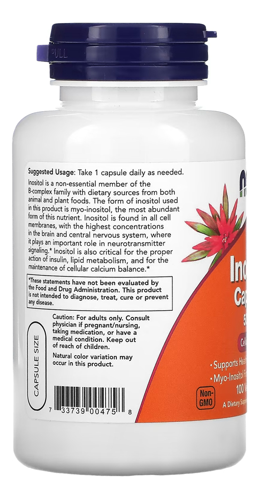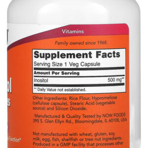 Inositol 500mg Now Foods 100 Veg Cápsulas Produto Importado Original