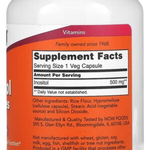Inositol 500mg Now Foods 100 Veg Cápsulas – No Brasil
