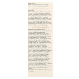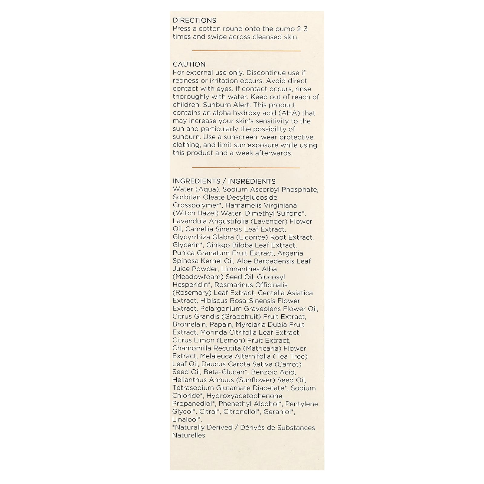 Aqua, sodium ascorbyl phosphate, sorbitan oleate decylglucoside crosspolymer*, água de Hamamelis virginiana (hamamélis), dimetilsulfona *, óleo da flor Lavandula angustifolia (lavanda), extrato da folha de Camellia sinensis, extrato da raiz de Glycyrrhiza glabra (alcaçuz), glicerina*, extrato da folha de Ginkgo biloba, extrato da fruta de Punica granatum, óleo do grão de Argania spinosa, pó do suco da folha de Aloe barbadensis, óleo da semente de Limnanthes alba (meadowfoam), glucosil hesperidina*, extrato da folha de Rosmarinus officinalis (alecrim), extrato de Centella asiatica, extrato da flor de Hibiscus rosa-sinensis, óleo da flor de Pelargonium graveolens, extrato da fruta de Citrus grandis (toranja), bromelaína, papaína, extrato da fruta mirciaria dubia, extrato da folha de morinda citrifolia, extrato da fruta Citrus limon (limão-siciliano), extrato da flor de Chamomilla recutita (matricária), óleo da folha de Melaleuca alternifolia (melaleuca), óleo da semente de Daucus carota sativa (cenoura), beta-glucano *, ácido benzoico, óleo da semente de Helianthus annuus (girassol), tetrasodium glutamate diacetate*, cloreto de sódio, hydroxyacetophenone, propanediol*, álcool fenetílico*, pentilenoglicol*, citral*, citronellol*, geraniol*, linalol*.