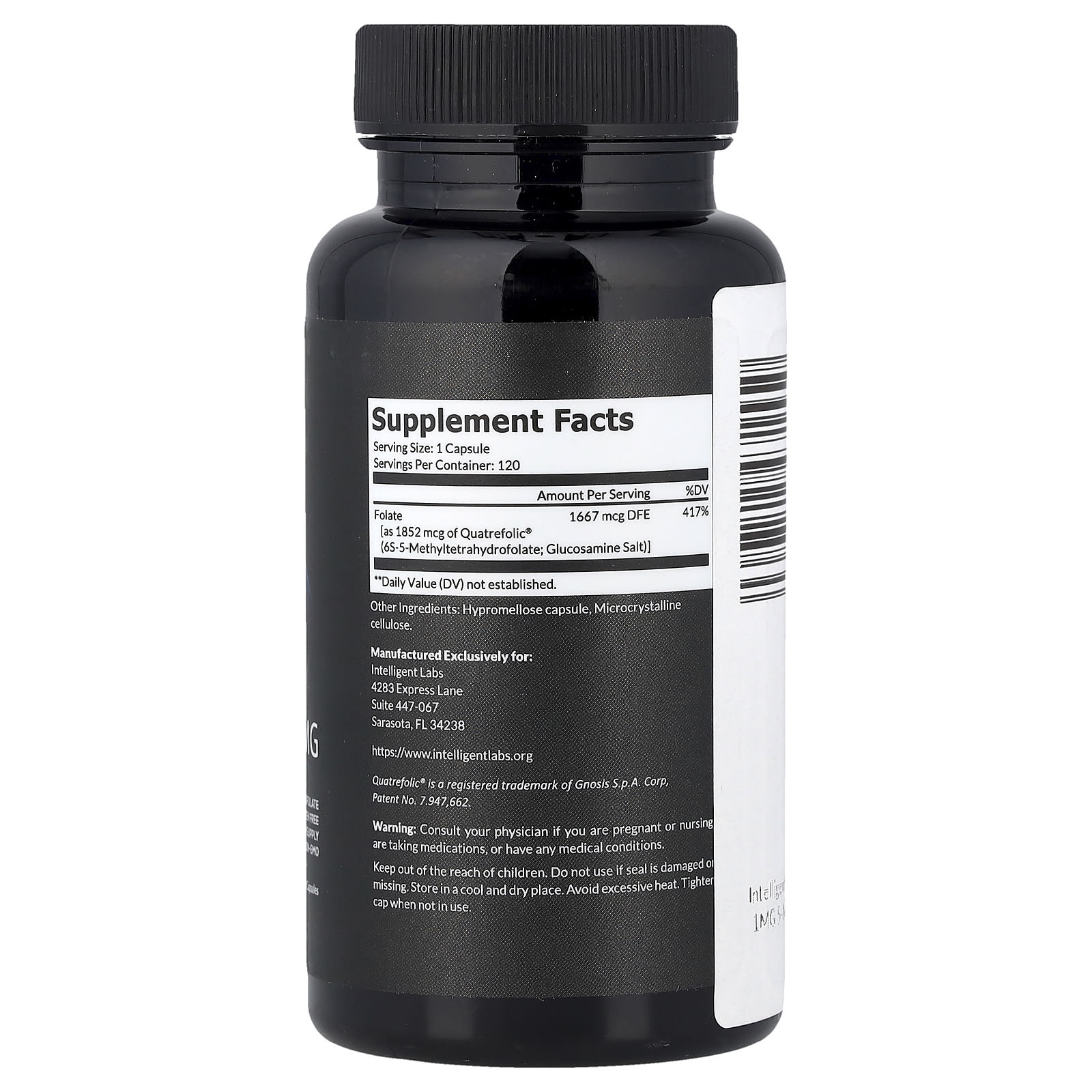 Intelligent Labs 5-MTHF 1 mg 120 Cápsulas Vegetais – Intelligent Labs Suplementos Vitaminas Vitamina B Vitamin B9 (Folate – Folic Acid).