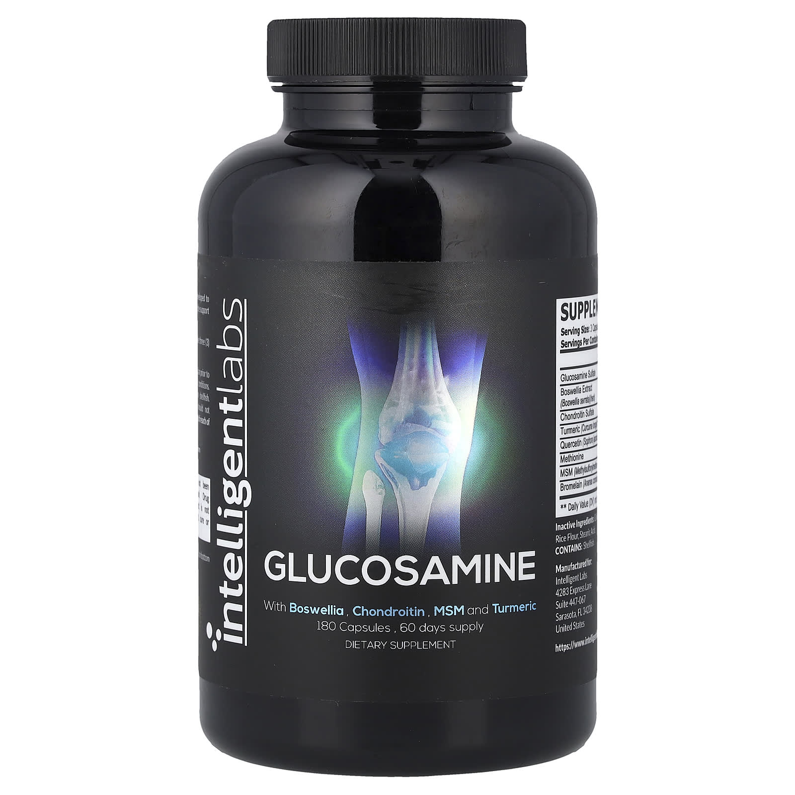 Intelligent Labs Glicosamina 180 Cápsulas – Intelligent Labs Suplementos Ossos, Articulações e Cartilagem Fórmulas de Glucosamina.
