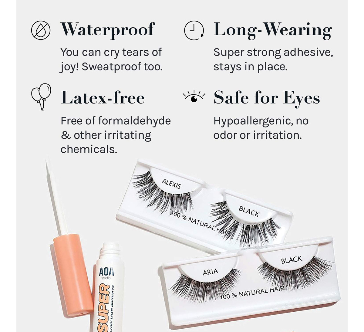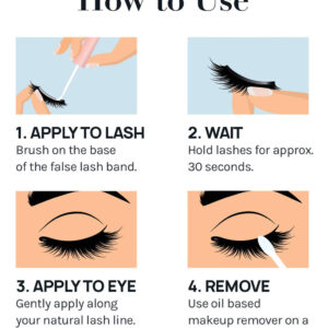 Formulado para um uso superior e duradouro dos cílios. Pincel aplicador para uma aplicação perfeita e sem bagunça. Impermeável, sem látex, sem odor e sem crueldade. — Resistente — Impermeável, hipoalergênico e sem irritação — Sem formaldeído e sem látex — Fácil de remover. — Fabricado na Coréia e projetado nos EUA.