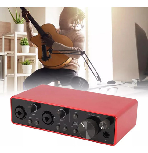 para Focusrite Scarlett 2i2 3 24 bits 196kHz 2i2 Interface de áudio USB de 4 geração para gravação, substituindo o som da interface USB Clear Sound interface: obtenha gravações mais claras e abertas graças aos pré-amplificadores de microfone de maior desempenho que a linha já viu. Um modo aéreo selecionável adicionará mais clareza aos seus instrumentos acústicos ao gravar com 2i2.