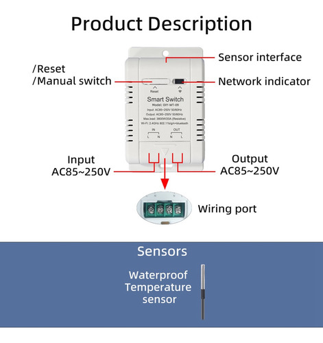 Cor: branco Material: plástico Conteúdo da embalagem: 1 * Interruptor de temperatura WiFi