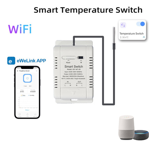 Interruptor De Temperatura Wifi Com Sensor De 1m Ewelink Sma