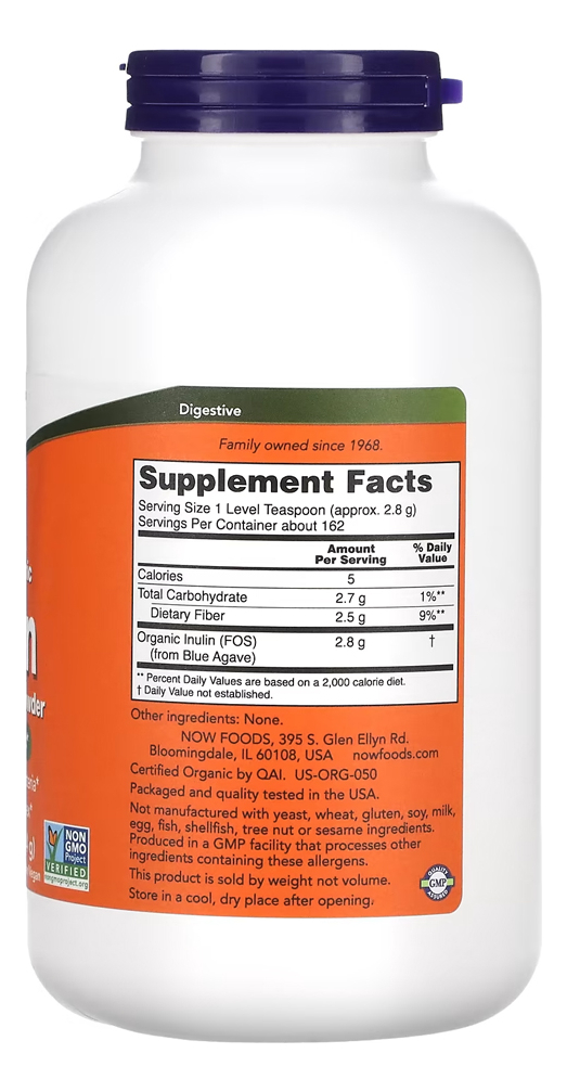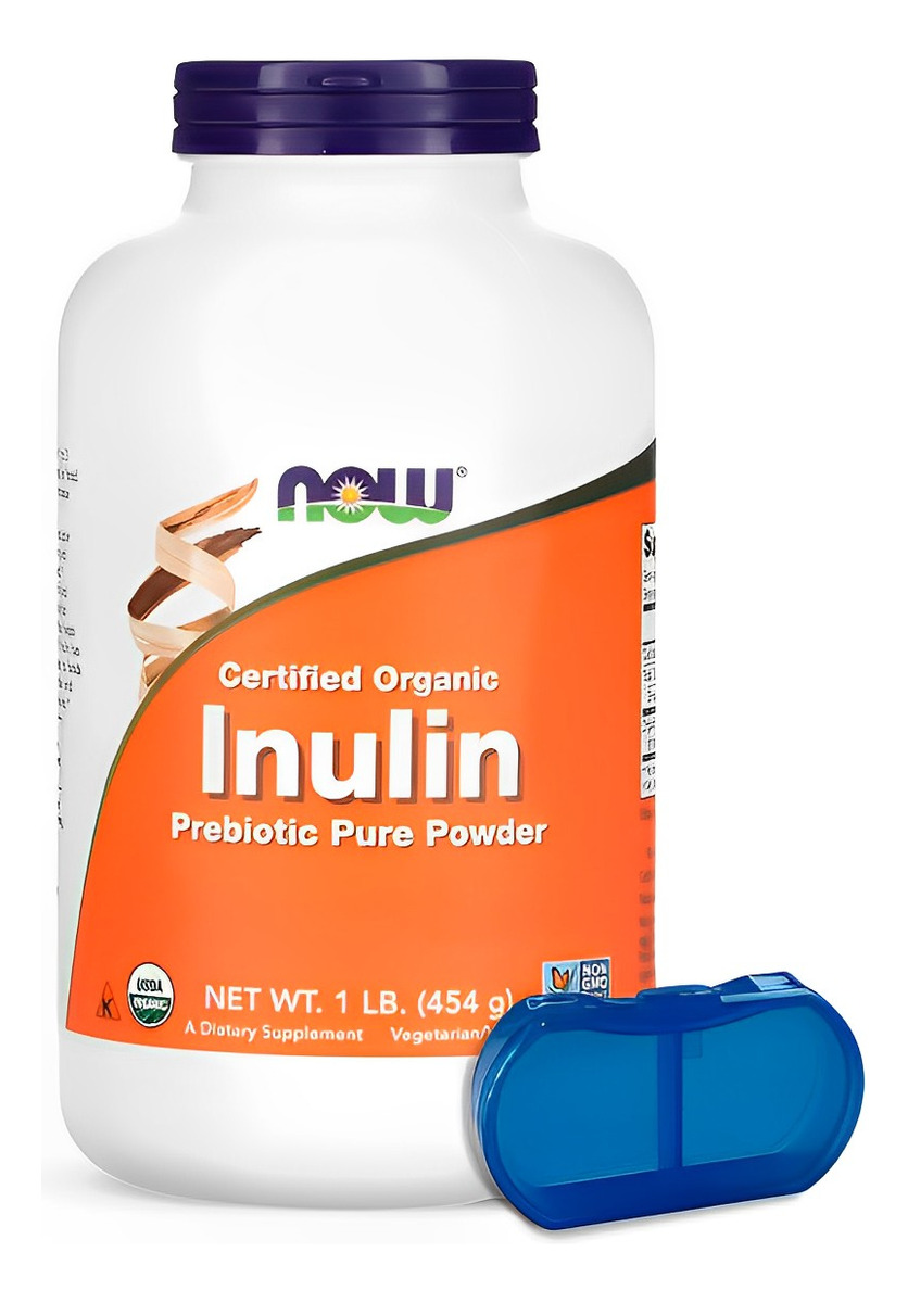 Inulina Orgânica Pó Now Foods 454g Puro Importado + Porta Cápsulas