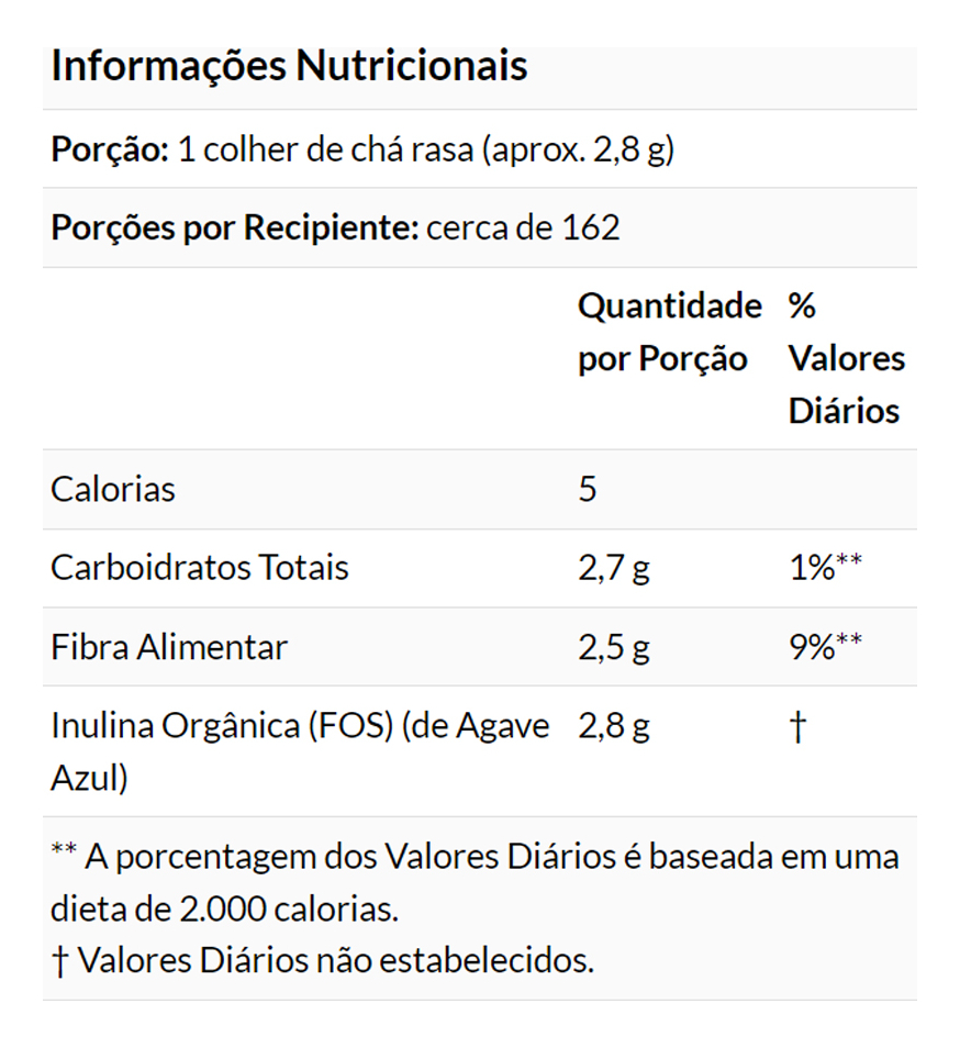 5. Composição: Contém inulina orgânica pura, extraída da raiz de chicória e livre de aditivos desnecessários. Validade longa