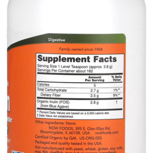 2. Forma Prática: Apresentada em pó puro de 454g, a inulina da Now Foods é facilmente incorporada à rotina diária.