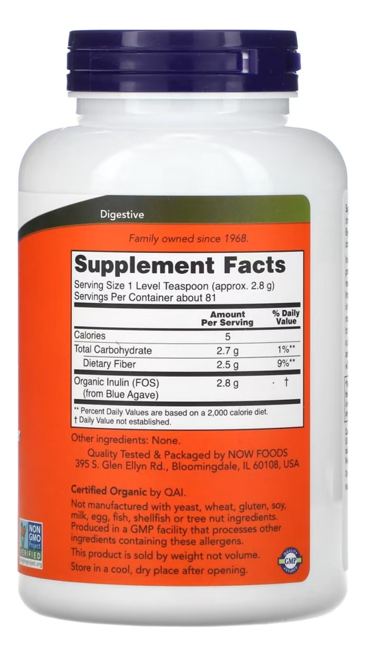 Inulina Orgânica Pure Powder 227g Now Foods Pó Puro Prebiótico – Importado