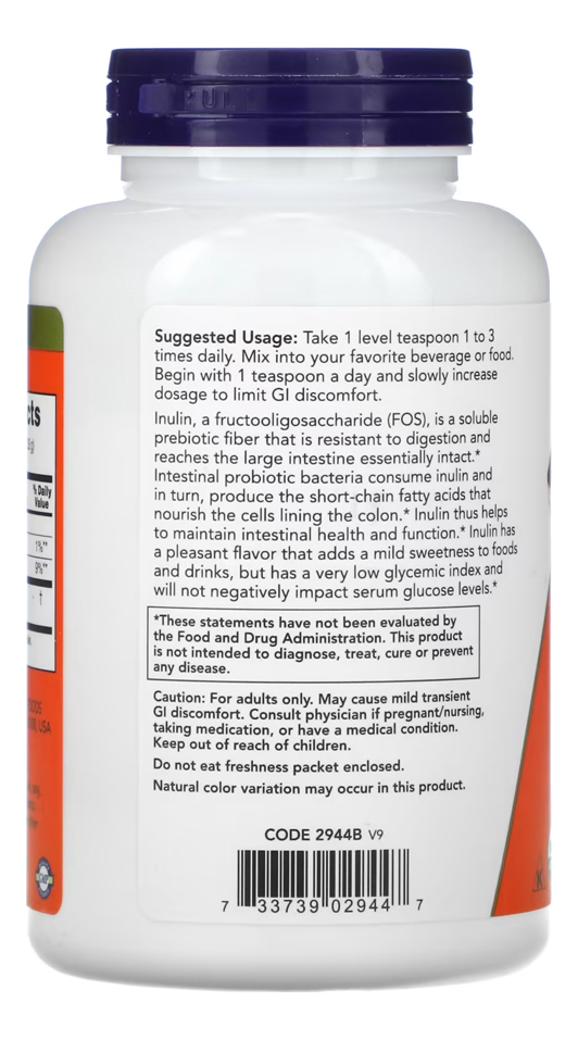 Inulina Orgânica Pure Powder 227g Now Foods Pó Puro Prebiótico – Importado