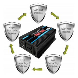 4. Várias proteções: 8 funções de proteção de segurança, fusível embutido, design de carregamento seguro, ventilador de resfriamento para evitar o superaquecimento do conversor de energia do carro, economize energia e energia. Proteção contra sobretensão, sobrecarga, sobrecorrente, curto-circuito, subtensão, superaquecimento e curto-circuito.