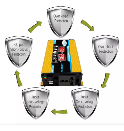 (inversor, baixa tensão) proteção quando a tensão da bateria é inferior a 10,5 V e proteção de alta tensão quando a tensão da bateria é superior a 15 V) Lista de embalagem: 1 x Power Inversor
