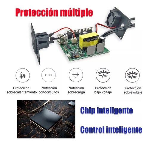 1 porta fêmea americana, 2 portas USB (2.1A e 1A), 1 ventilador, controle inteligente de temperatura – Portátil e prático Tamanho 80 cm * 64 cm * 38 cm, portátil e prático.