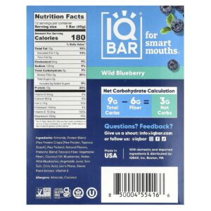 IQBAR Barras de Proteína Vegetal Mirtilo Selvagem 12 Barras 45 g (16 oz) cada – IQBAR Alimentos Barras Nutrição Esportiva Barrinhas e snacks esportivos Barras de Proteína Barras de Proteínas à base de Plantas.