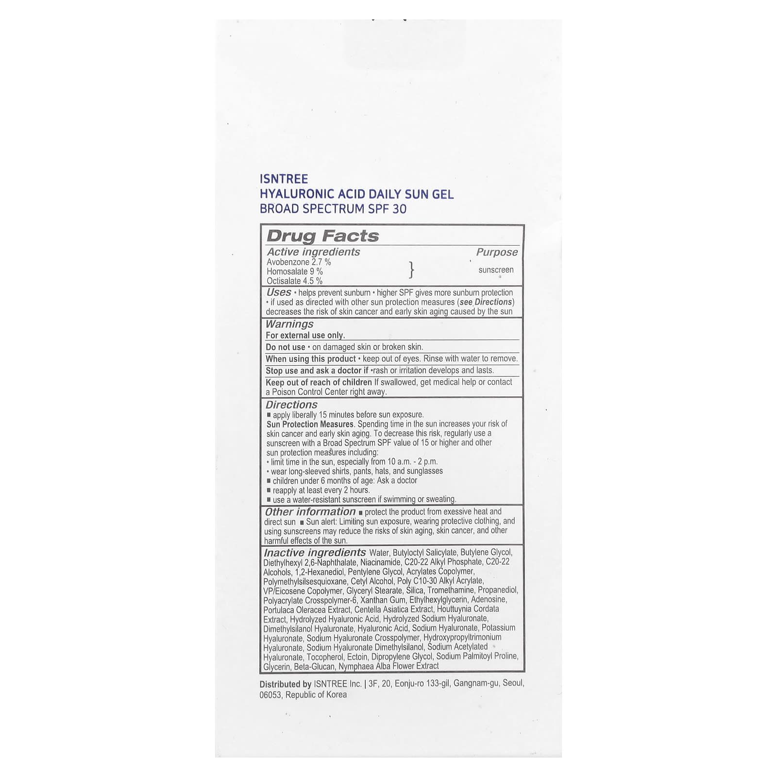 ISNtree Ácido Hialurônico Gel Solar Diário de Ácido Hialurônico FPS 30 50 ml (169 fl oz) – ISNtree Cuidados Pessoais Protetor Solar Protetor solar facial Protetor Solar K-Beauty.